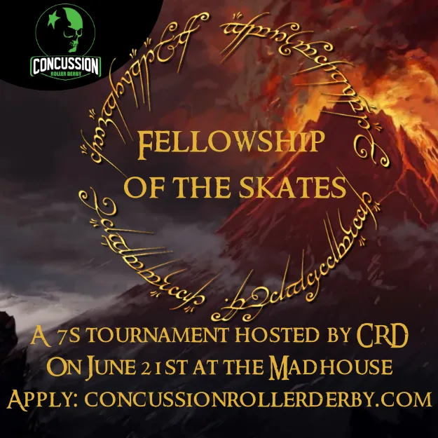 Make your fellowships of 7 and embark on an epic quest to help Concussion Roller Derby raise funds for hosting MRDA Championships while competing against 7 other teams in a double elimination bracketed tournament!
